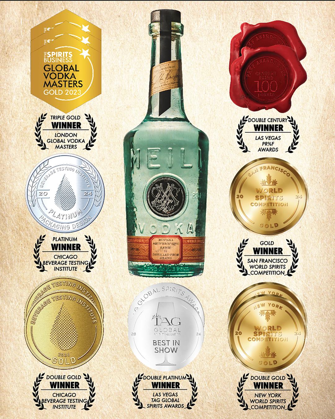 Inspired by exploration, Meili Vodka is an elemental masterpiece. Made with pristine mountain water, native grains, and the clean air of Montana, Meili is distilled to maintain a rich, velvety flavor without the need for multiple distillations. Each sip is vibrant, with a balanced profile that works beautifully neat or in cocktails. Bottled in 100% post-consumer recycled glass with unique textures and a striking green hue, Meili captures the rugged beauty of its environment and offers an eco-friendly statement.