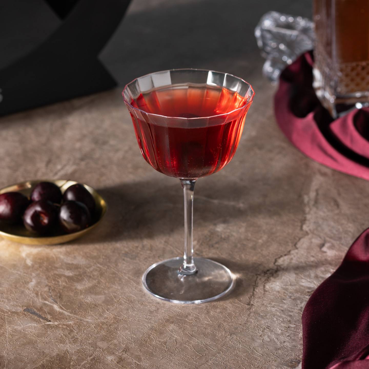 The Big Apple Chicken is a bold blend of Chicken Cock Kentucky Straight Bourbon Whiskey and apple brandy. Sweet vermouth adds complexity while brandied cherry syrup rounds out the flavors, offering a tantalizing cocktail that's as big and spirited as the city it's named after.