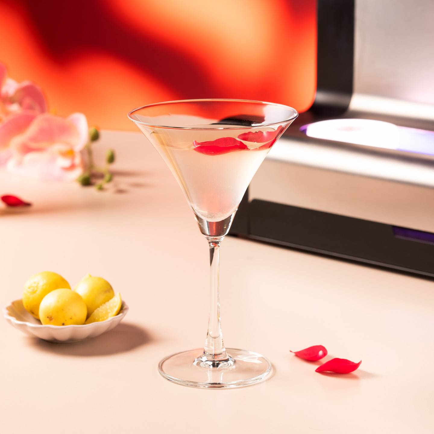 A velvety martini featuring the subtle and floral notes of violet, creating a sophisticated and visually stunning cocktail.