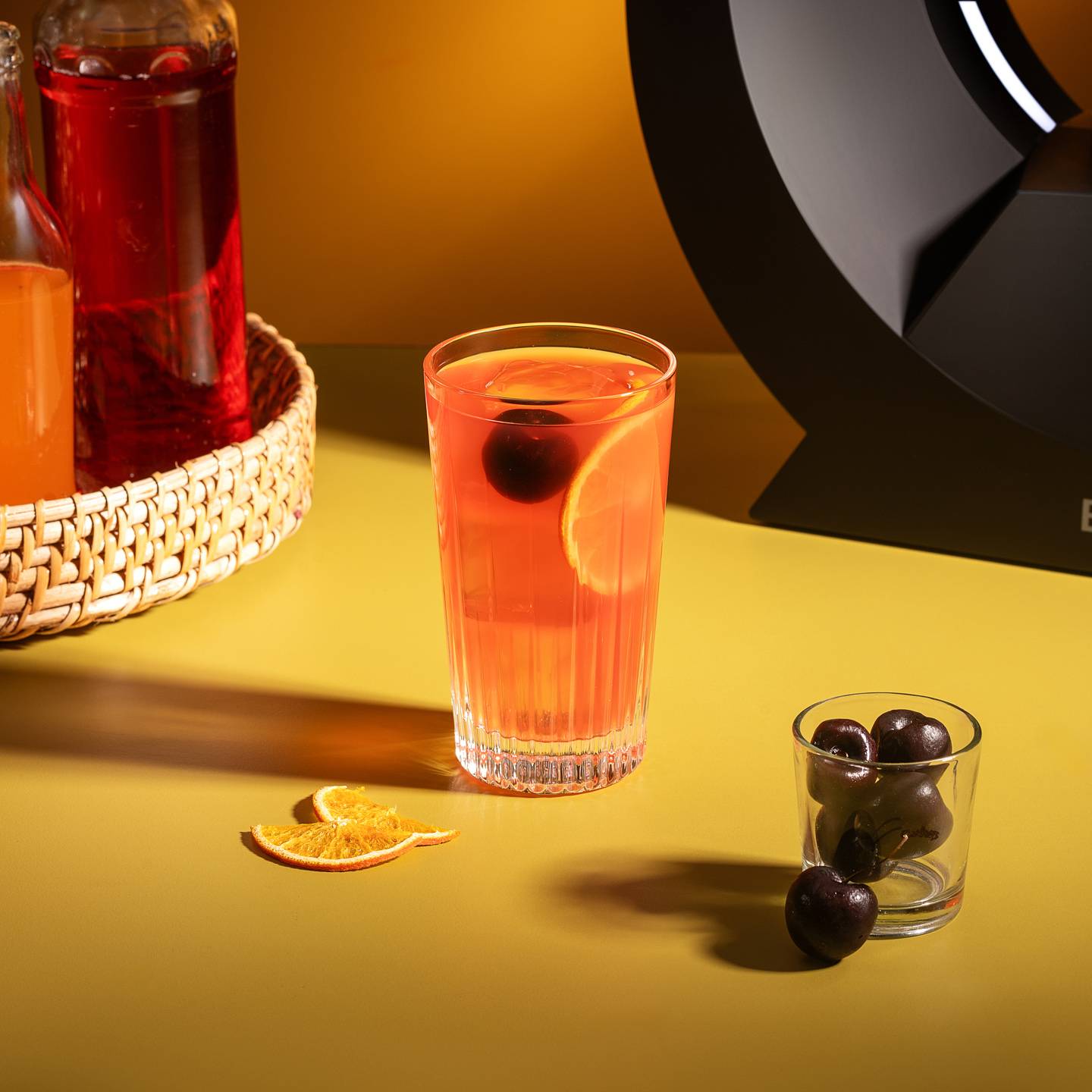 A playful drink combining cranberry and orange juice, topped with fizzy ginger ale for an uplifting finish.