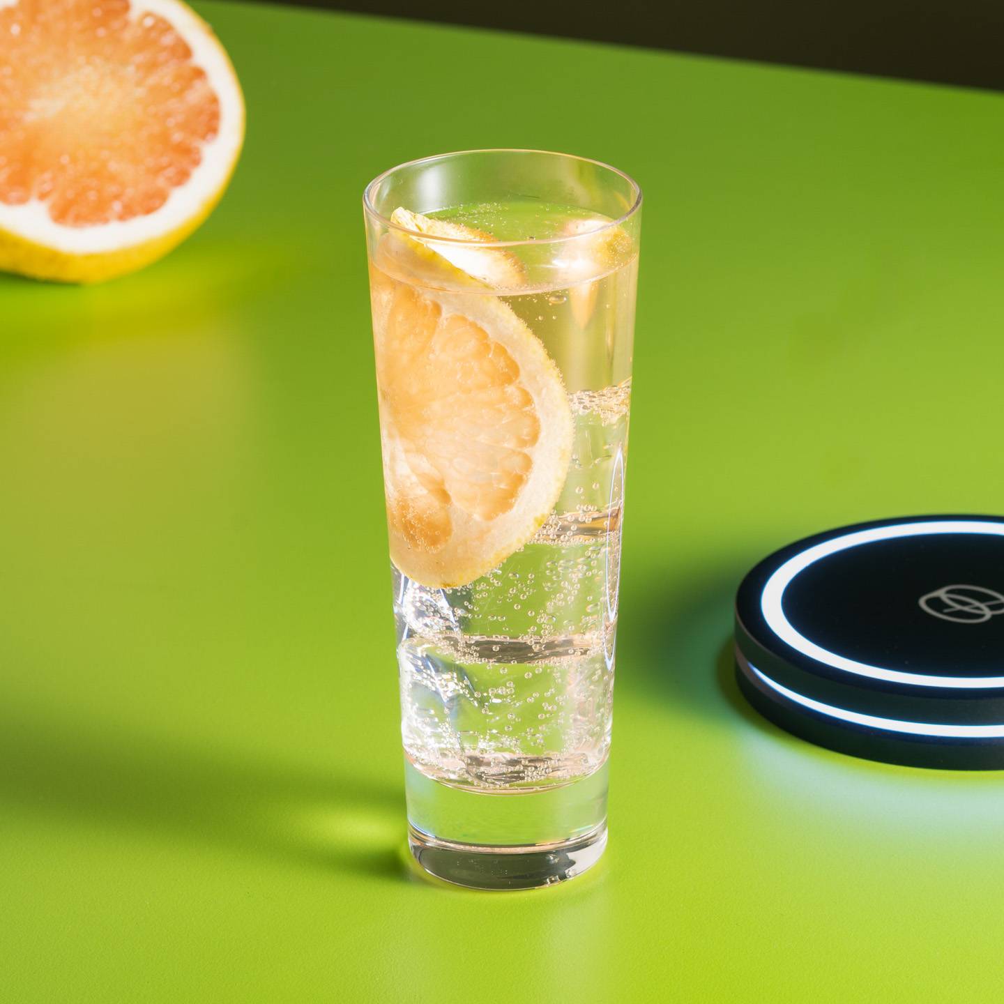 Revitalize your senses with the Sunny Citrus Refresher, a rejuvenating blend of 1.5 oz of vodka, 0.75 oz of elderflower liqueur, and 1 oz of grapefruit juice, harmoniously mingled over clear ice cubes. This modern highball cocktail is crafted for those who appreciate the invigorating combination of citrus juices. Garnished with a grapefruit twist, it's a burst of sunshine in every sip, making it the perfect libation for a contemporary and refreshing experience.