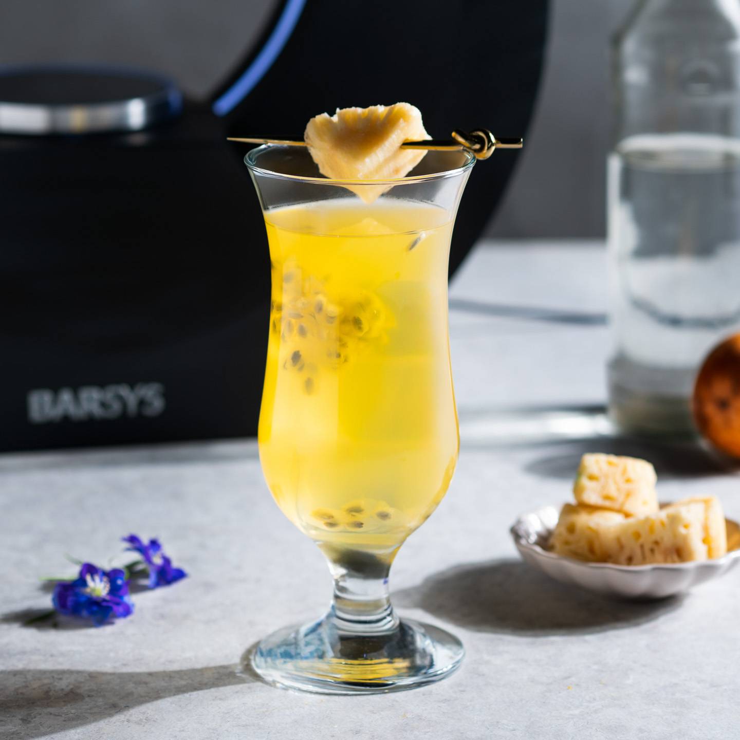Immerse yourself in a tropical paradise with the Tropical Pineapple Fusion, a delightful punch featuring 1.5 oz of coconut rum, 2 oz of pineapple juice, and 0.5 oz of passionfruit puree. Served over standard ice cubes in a hurricane glass and garnished with a pineapple leaf, this cocktail is a celebration of exotic fruit flavors. Perfect for a tropical escape, it's a fruity and refreshing libation.