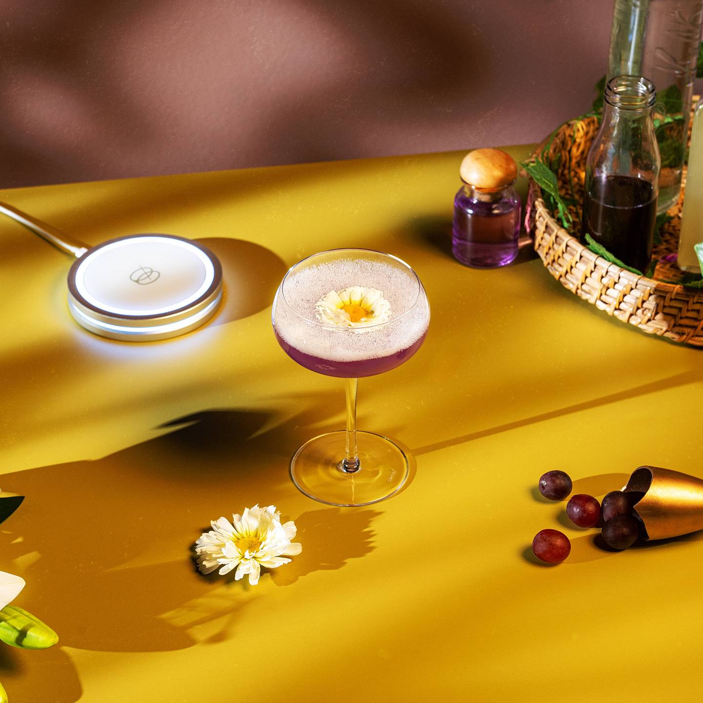 A delicate floral gin sour infused with violet liqueur for a stunning lavender hue.