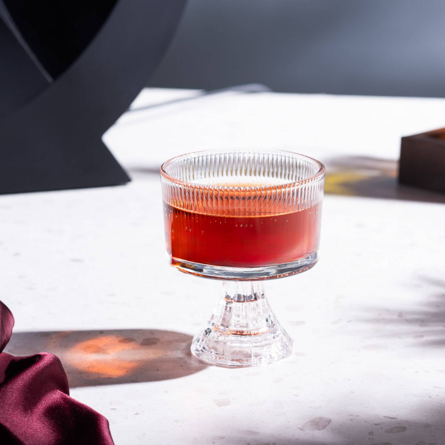 Malena is a smooth and sophisticated Rye Whiskey, Campari, and Port Wine based cocktail. The whiskey has a deep amber color and a rich, complex flavor while the Campari adds a bright, fruity sweetness to the mix. The port wine rounds out the drink with its smooth, velvety texture and complex flavor. The result is a truly unique and delicious cocktail that is perfect for any occasion.
